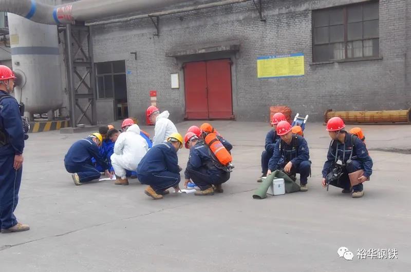 公司總經理劉文波,安全總監崔建本,總經理助理張彥斌,生產部部長肖磊,安全處處長靳張君、副處長牛亮,動力廠廠長張建平等領導參加了這次演練活動。安全處處長靳張君擔任演練負責人、副處長牛亮任總指揮、主區煤氣防護站站長郭朋飛擔任現場指揮。