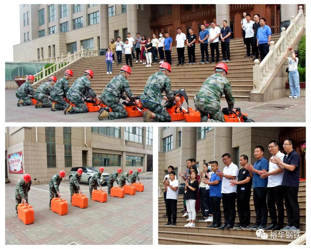 在集團(tuán)辦公樓門前,考察團(tuán)一行饒有興致地觀看了裕華團(tuán)委組織的民兵應(yīng)急救援演練節(jié)目。隨著教官一聲聲高亢激昂的口令聲,身著迷彩服的民兵一個(gè)個(gè)精神抖擻,邁著整齊的步伐進(jìn)行隊(duì)列訓(xùn)練,雖然天氣炎熱,但民兵隊(duì)伍個(gè)個(gè)精神抖擻,身手敏捷,救援動(dòng)作干脆利落,贏得大家的交口稱贊。