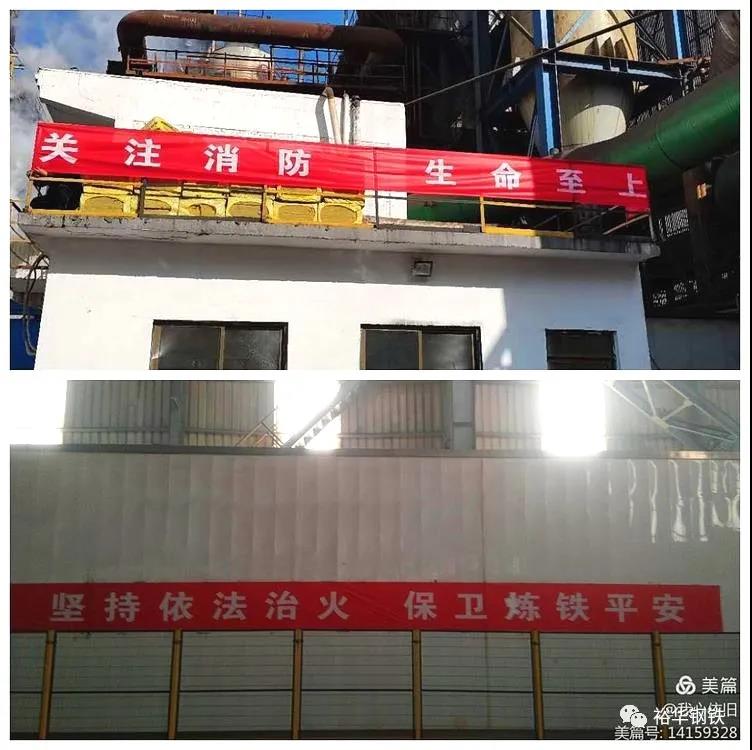 廠區(qū)現(xiàn)場利用條幅進行宣傳,并時刻關(guān)注消防、生命至上,煉鐵東區(qū)全體職工堅決打好安全消防月攻堅戰(zhàn)。